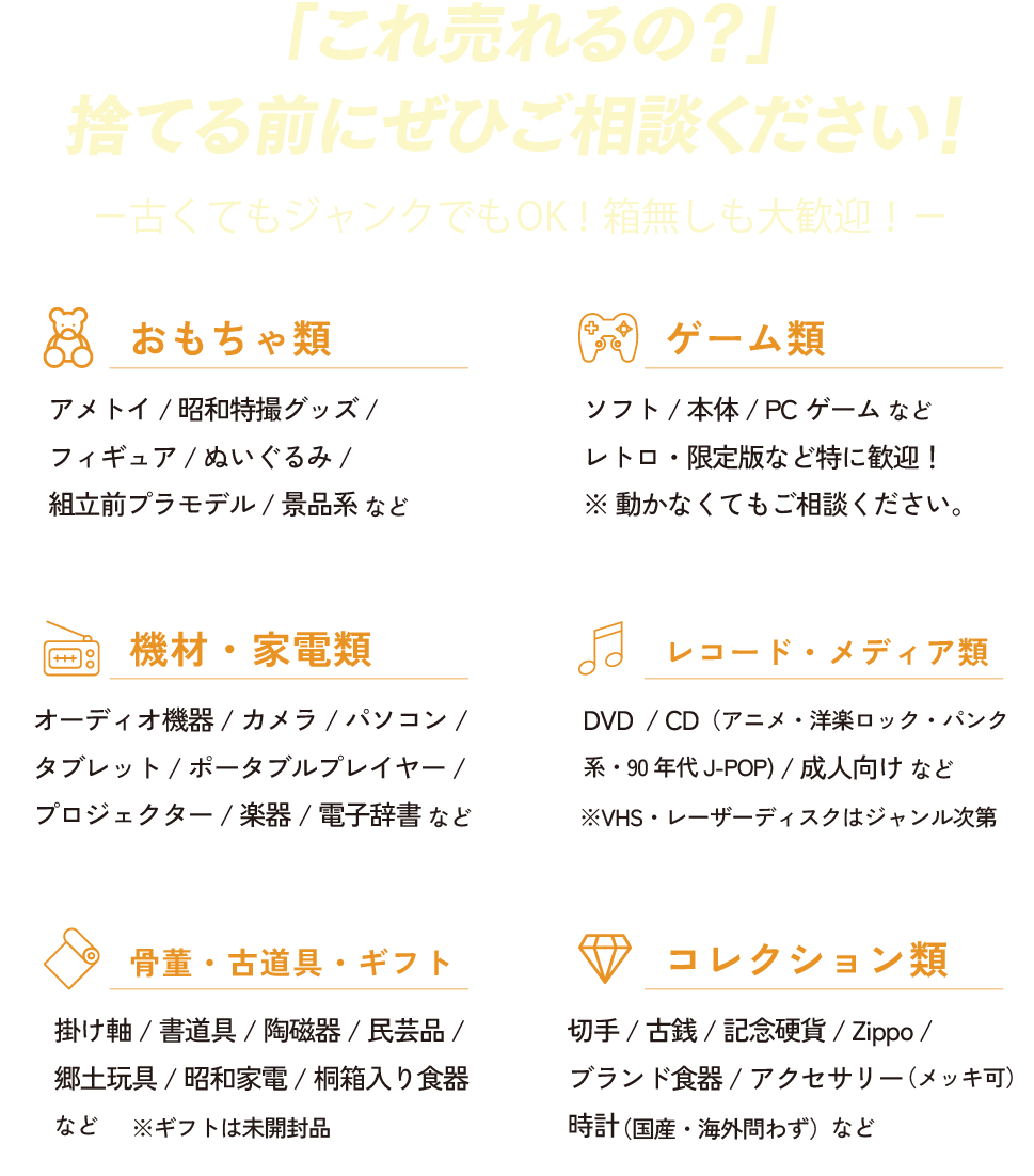 価値あるものを正しく鑑定。当社は古物商の資格を持つプロが値段のつくモノをキチンと査定し、買取りさせていただいてます。